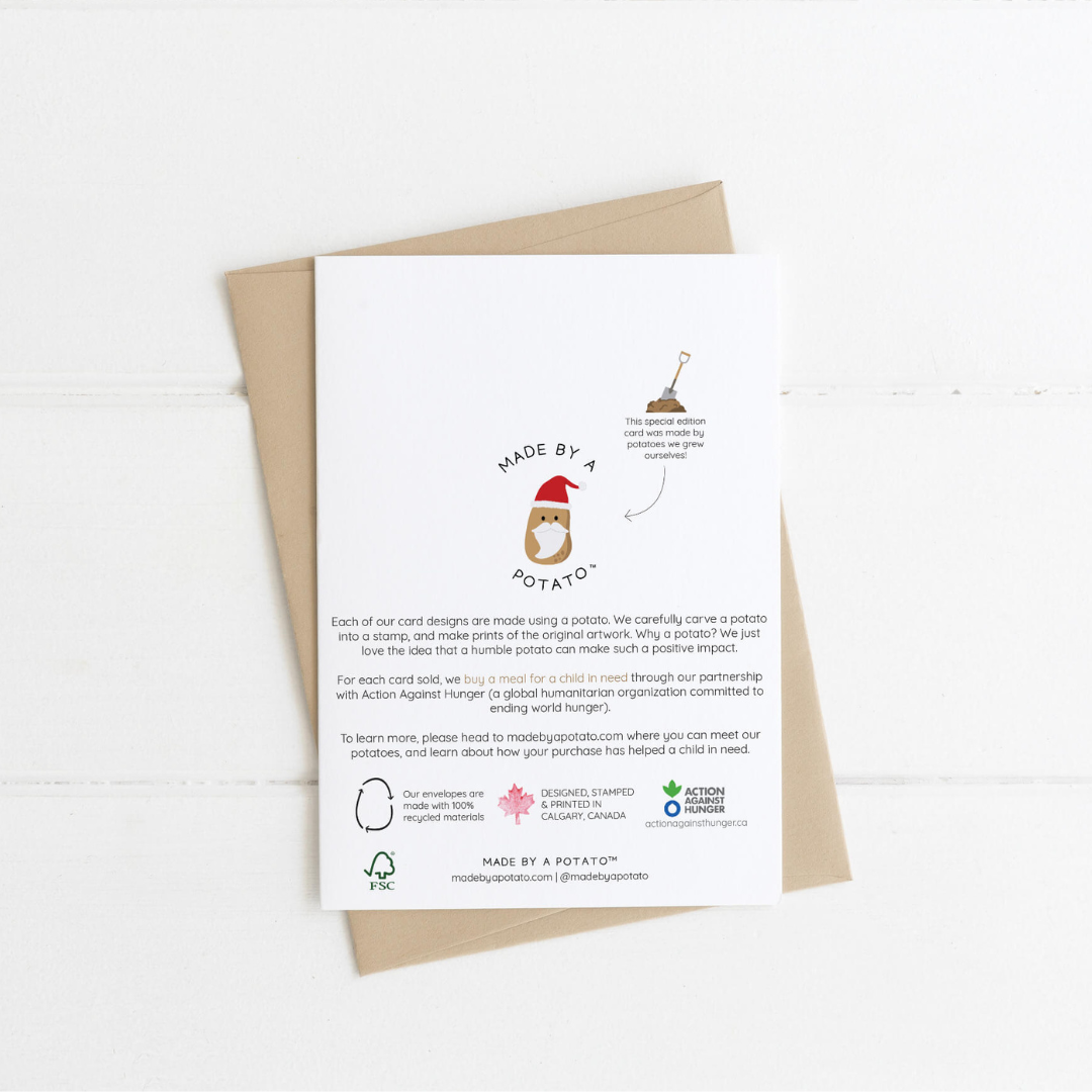 Made by a Potato greeting cards are all originally created using a carefully carved potato stamp. This card is a print of the original artwork.