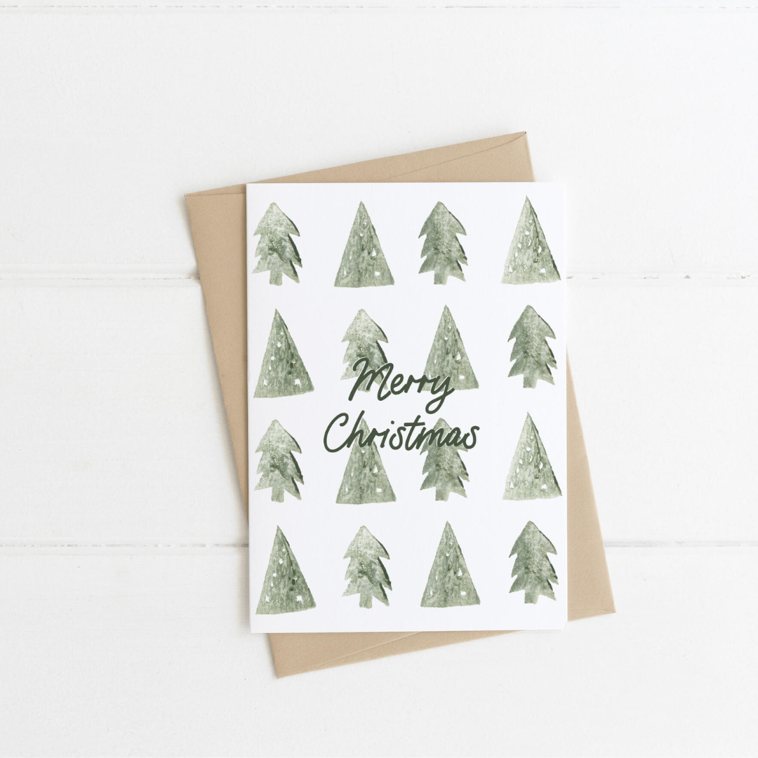 On first day of Christmas my true love gave to me... a Made By a Potato card stamped with Christmas Trees.
