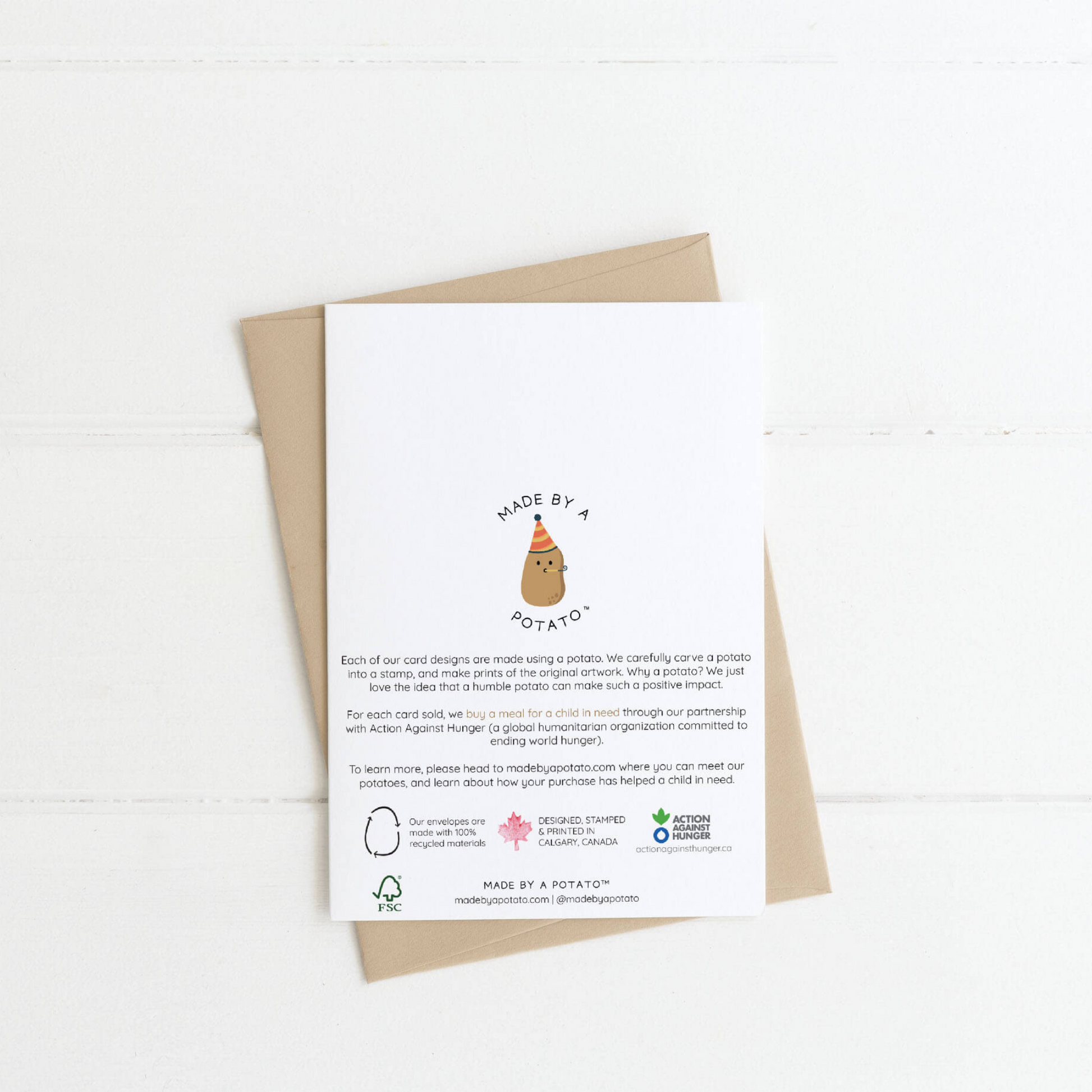 Made by a Potato greeting cards are all originally created using a carefully carved potato stamp. This card is a print of the original artwork.